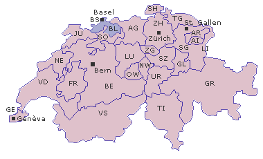 Zürich Bern St.Gallen Graubünden Thurgau Zürich Schaffhausen Aargau Zug Schwyz Glarus Uri Luzern Basel-Stadt Baselland Solothurn Jura Neuchâtel Bern Fribourg Tessin Wallis Vaud Nidwalden Obwalden Appenzell/AI Appenzell/AR St.Gallen Genève